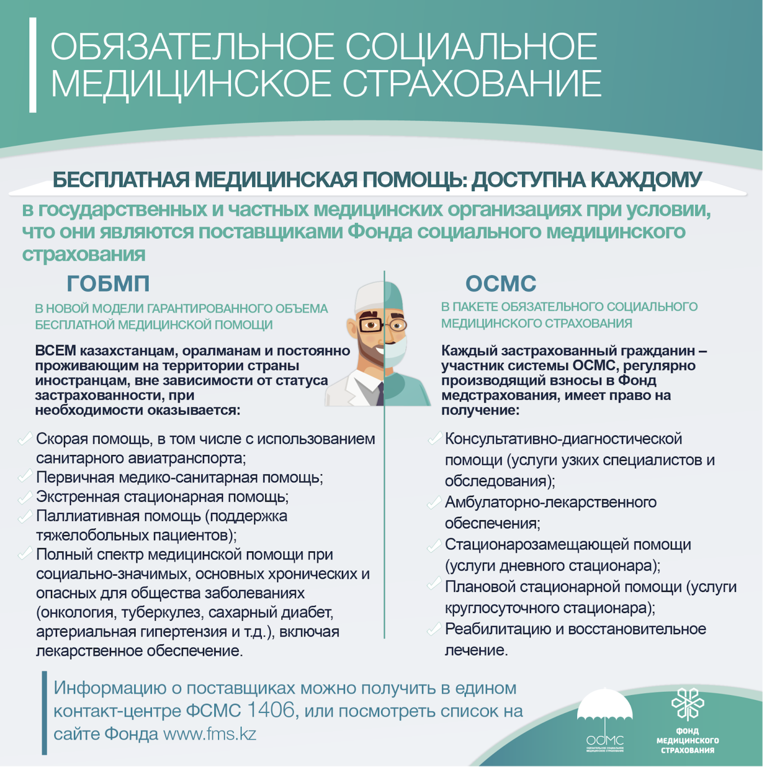 С 1 января 2020 года в Казахстане в полную силу заработало обязательное социальное медицинское страхование. Это форма государственной социальной защиты интересов населения в охране здоровья в случае наступления болезни, травмы, беременности и родов, инвалидности и старости.